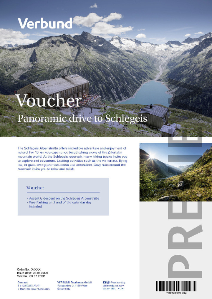 • Ascent and descent on the Schlegeis Alpine Road (toll for cars)